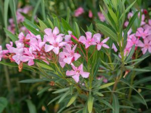 " برای خرید عمده ، تعداد بالای 50 عدد تماس بگیرید "  خرزهره درختچه ای زینتی است با برگ های تقریبا سرنیزه ای شکل دائمی چه این برگ ها بر روی ساقه قرار می گیرند. به عبارت بهتر در هر بند از ساقه قرار می گیرند. طول هر برگ ۱۰تا ۲۰سانتی متر می باشد. گل ها به رنگ سفید یا صورتی بوده که منظره بسیار جالبی دارند. خرزهره در تمام طول سال سبز بوده و دارای رشد سریعی است بطوری که معمولا هرساله یکبار هرس می شود. میوه ی گیاه باریک و قلمی است و پوشش غلاف مانند آن حاوی تعداد زیادی دانه با موهای ابریشمی است. این گیاه در بسیاری از مناطق ایران کاشته می شود و در برخی نواحی نیز به صورت خودرو یافت می شود.خرزهره گیاهی است چندساله که به صورت بوته ای و یا درختچه می روید. این گیاه که بومی مناطق مدیترانه ای است به عنوان گیاه زینتی در بسیاری از نقاط دنیا کاشته می شود.به طور معمول در پارک ها برای اهداف زینتی کاشت می شود. این گیاه را در فارس٬گیش٬شبرنگ٬جار٬پنی و پی خوره نیز می نامند . برگ خرزهره به برگ بید شبیه است ولی از برگ بید ستبرتر و بزرگ تر است.